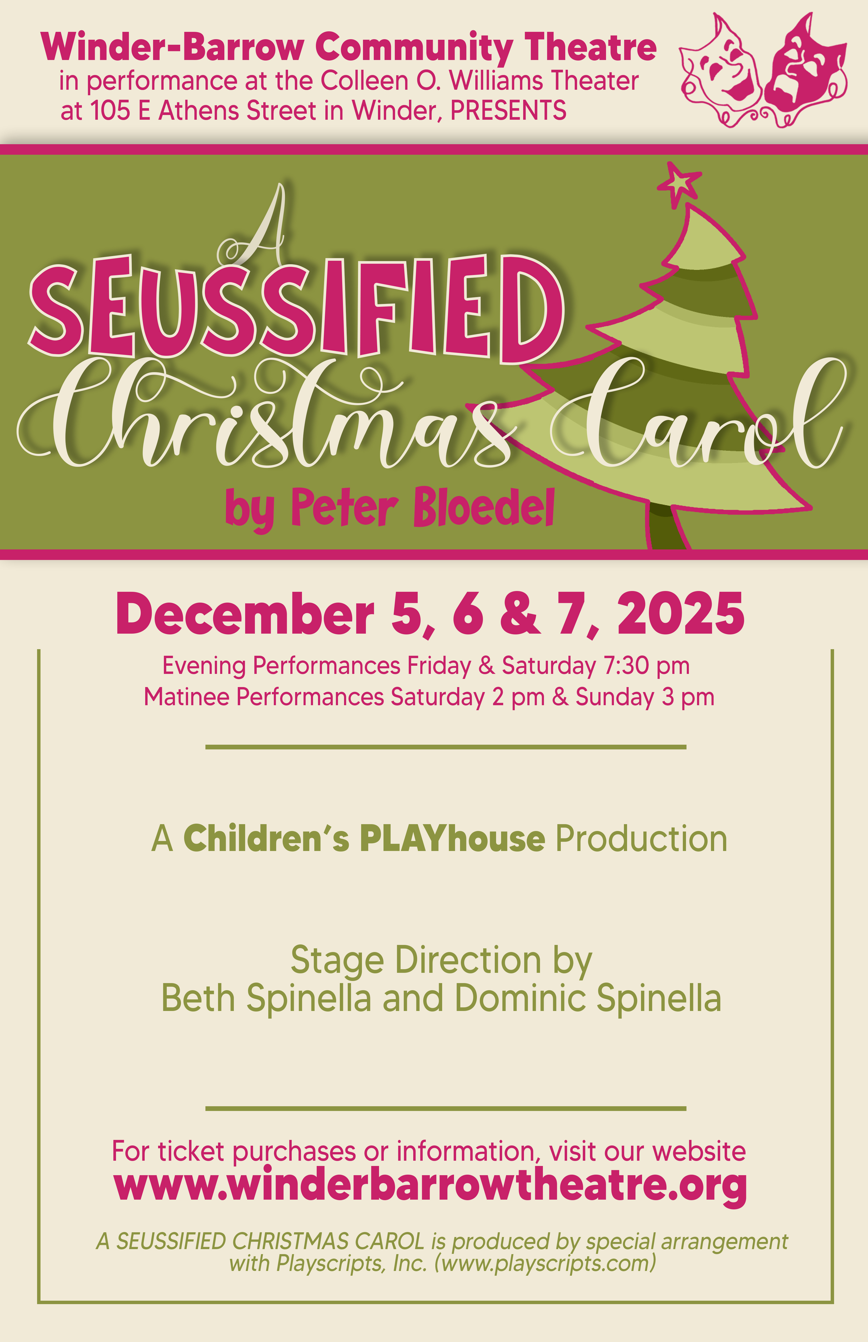 The mission of the Winder-Barrow Community Theatre is to make a positive difference in the life of our community, primarily through dramatic productions, and to assist community members in achieving their highest potential by providing performance opportunities, workshops and education in the theatrical arts.